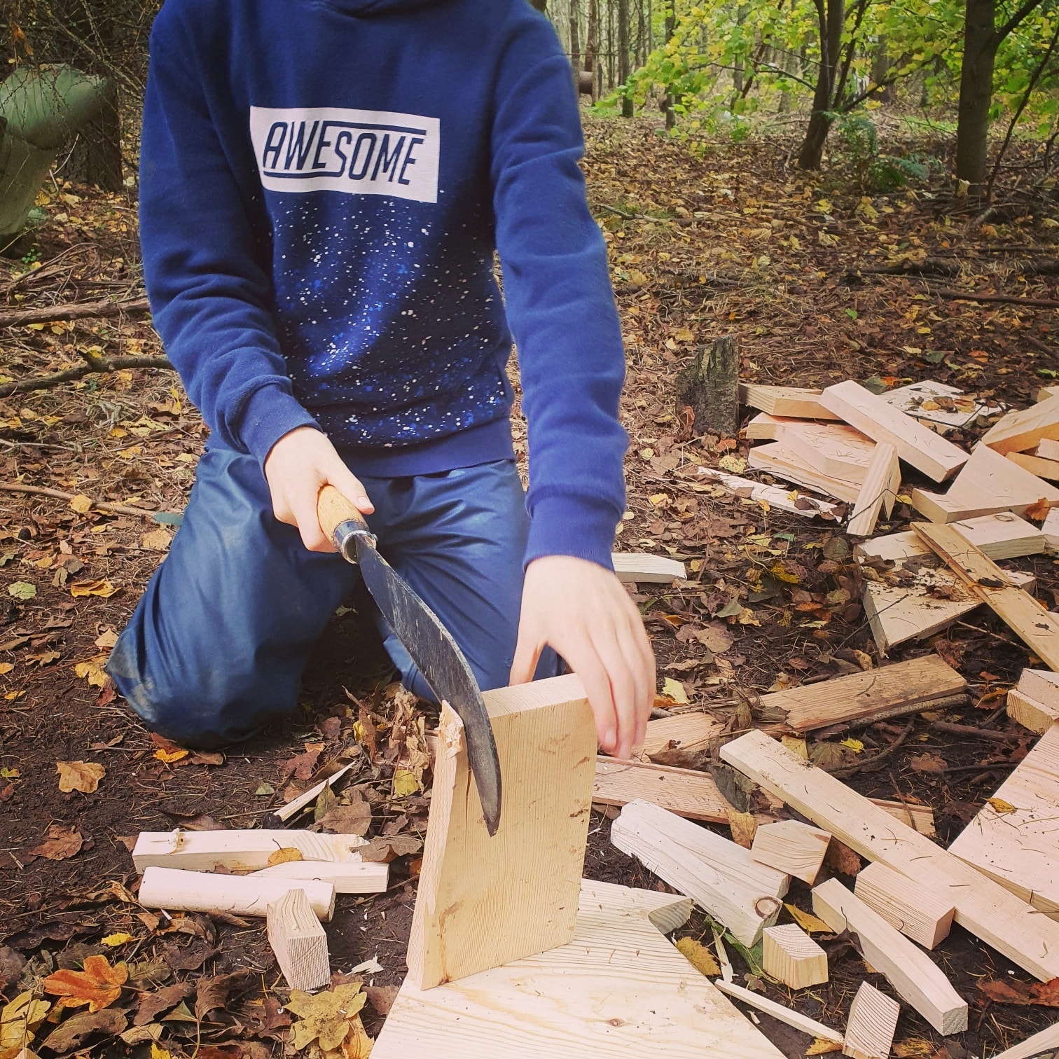 A variety of ‘forest school’ activities including tools, fire and campfire cooking
